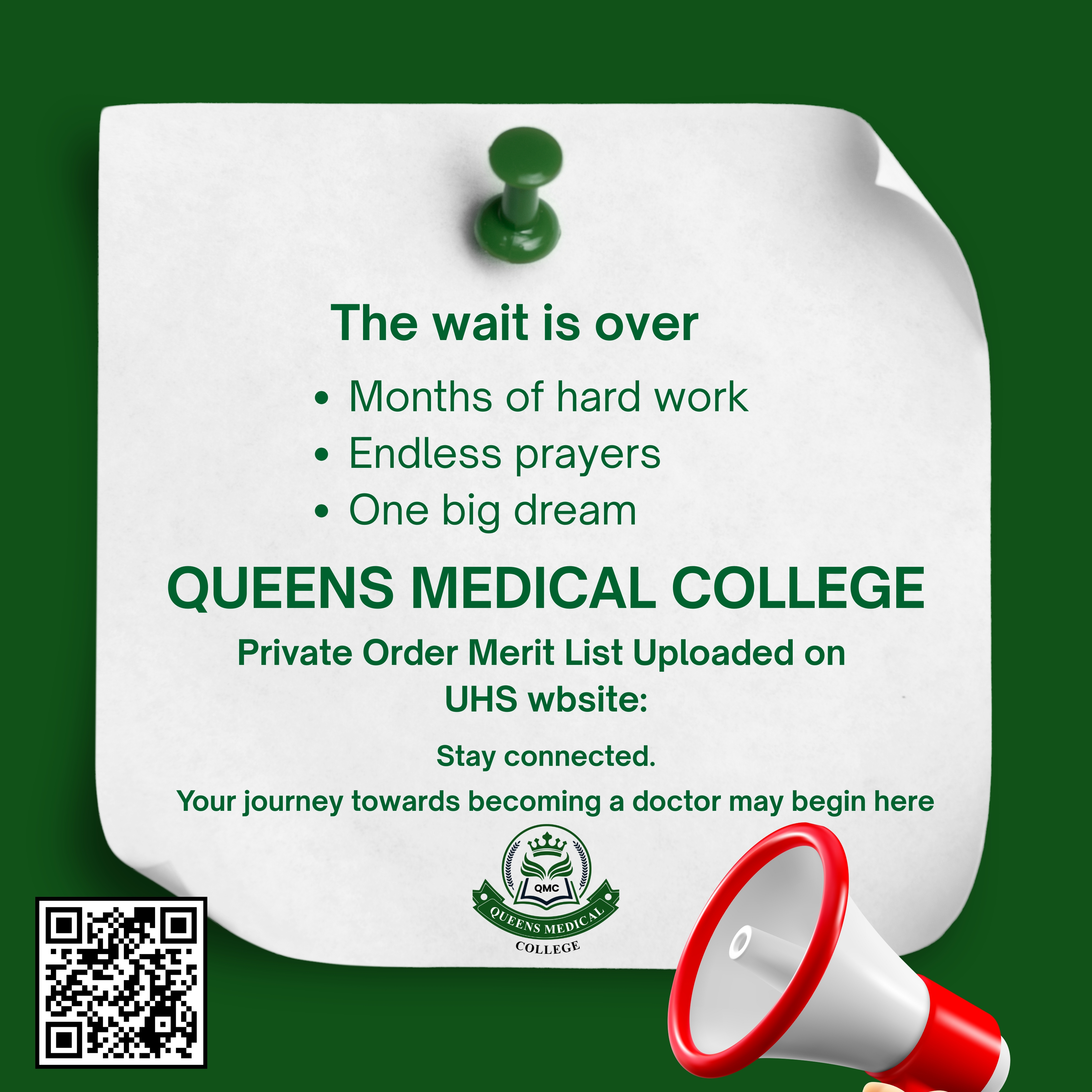 Queens Medical College, Kasur, strives to maintain the highest standards of medical education by integrating academic excellence with practical experience, ensuring our graduates are well-prepared for the dynamic healthcare landscape.